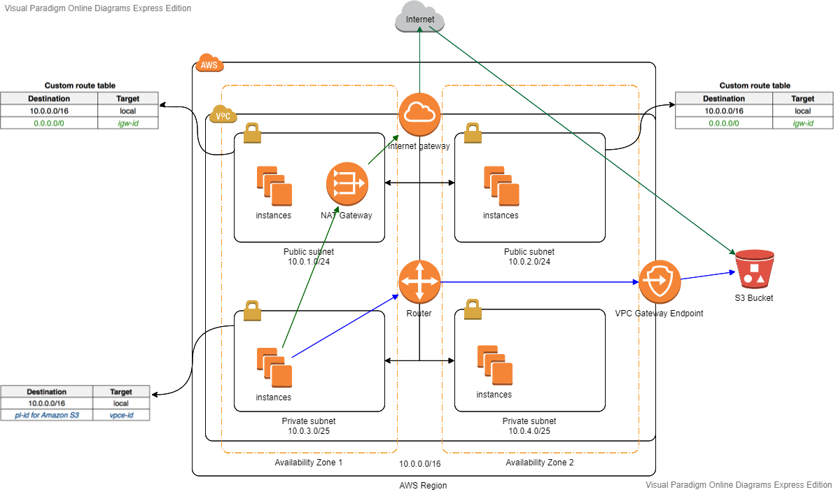 EC2(10.0.3.20, Private Subnet) - > NAT Gateway - > Internet Gateway - > 외부 인터넷 - > S3